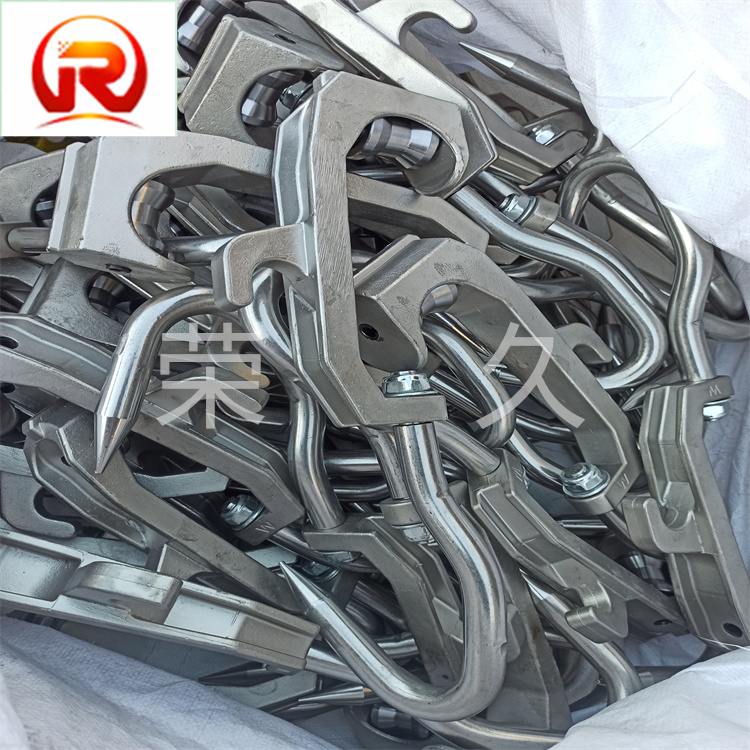 哪里生产牛管轨滑轮挂钩?大城县荣久橡胶制品厂是生产牛管轨滑轮挂钩的专业厂家,牛管轨滑轮挂钩是屠宰机械流水线中的关键配件,主要用于悬挂和运输牛二分胴体,其核心功能是通过双钩结构实现稳定承载与便捷操作。